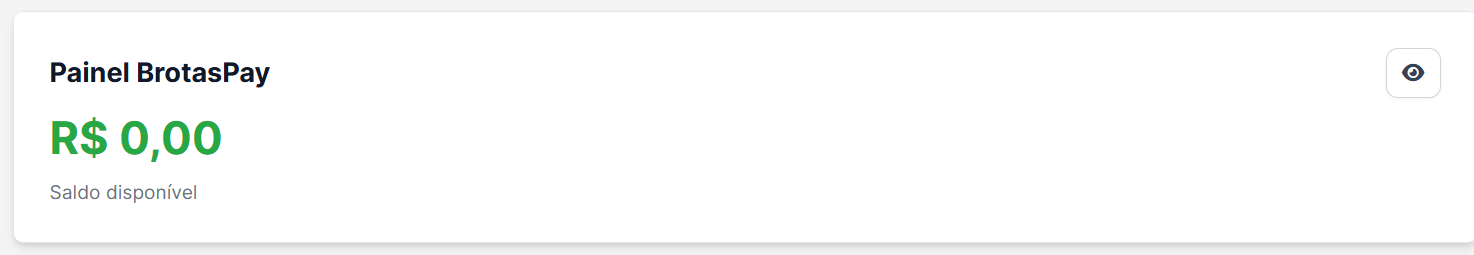 Esta área oferece uma visão completa da movimentação financeira da sua conta Brotas Pay, incluindo saldo disponível, receitas, taxas, e informações bancárias para depósito e saque.