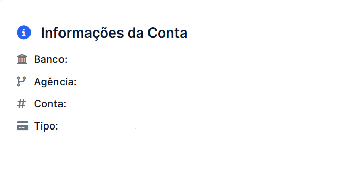 Agência / Conta / Tipo: Dados completos para transferências externas.