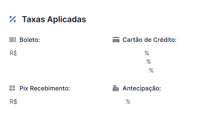 Essas taxas são automaticamente aplicadas a cada transação realizada.