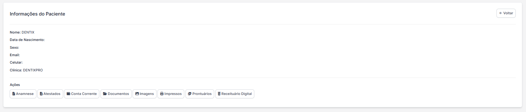 Espaço para armazenar e visualizar imagens clínicas ou radiografias do paciente, facilitando o acompanhamento do tratamento.
